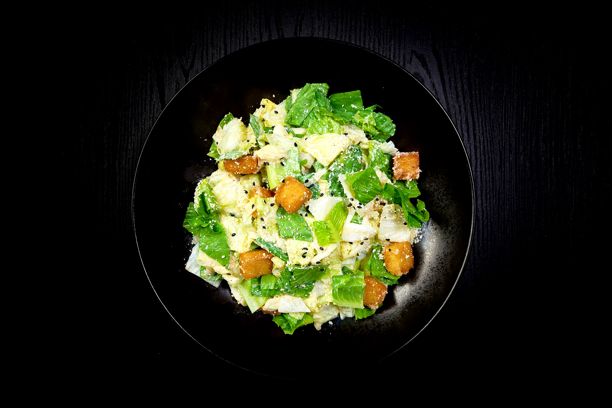 crunchy romaine lettuce, parmesan cheese, toasted sesame seeds, crispy croutons, caesar dressing, sesame seeds, with your selection.