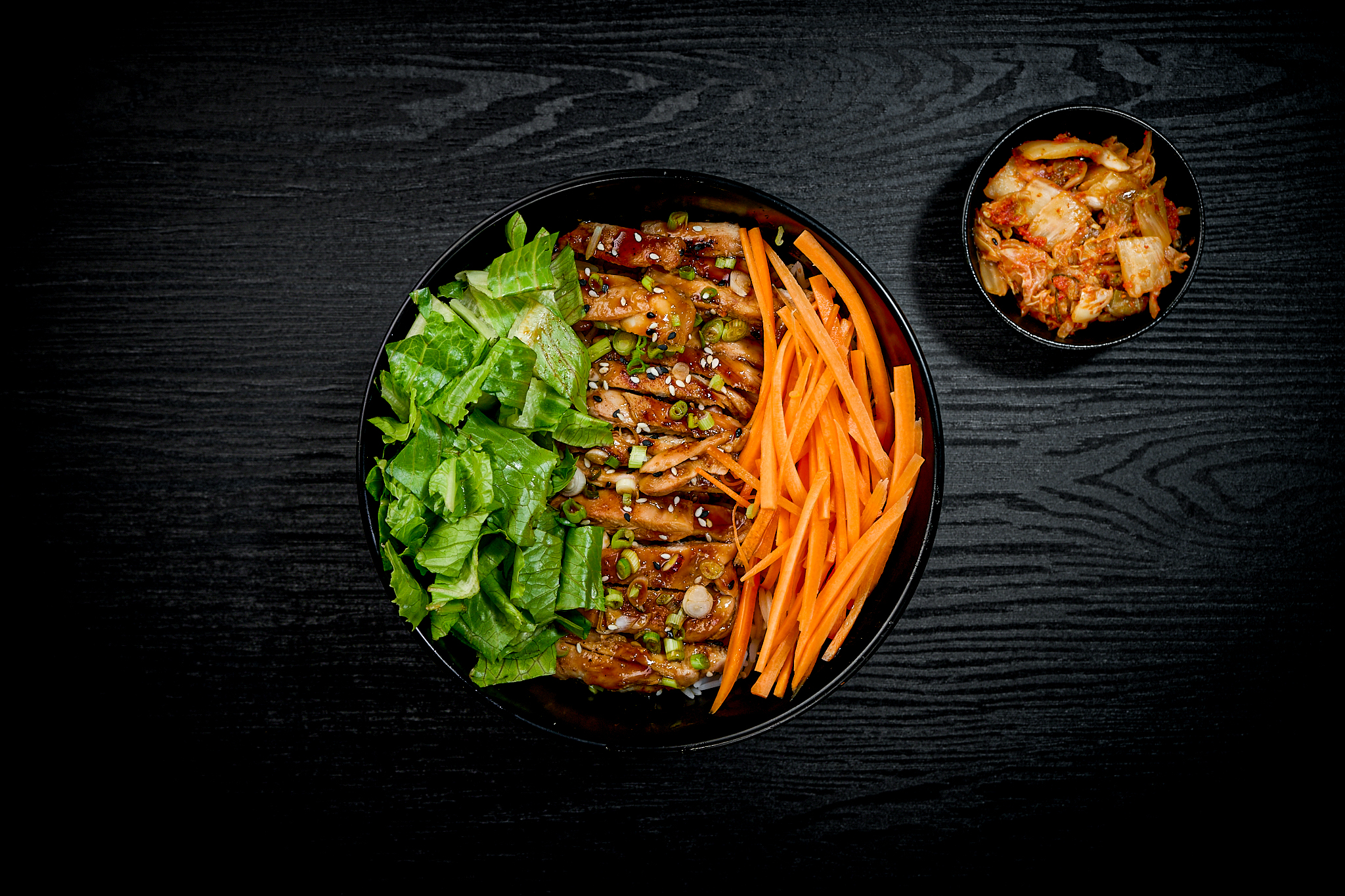 caramelized thin slices of beef or chicken slices in a sweet and savory well balanced soy sauce mixed with garlic, green onions and sesame oil