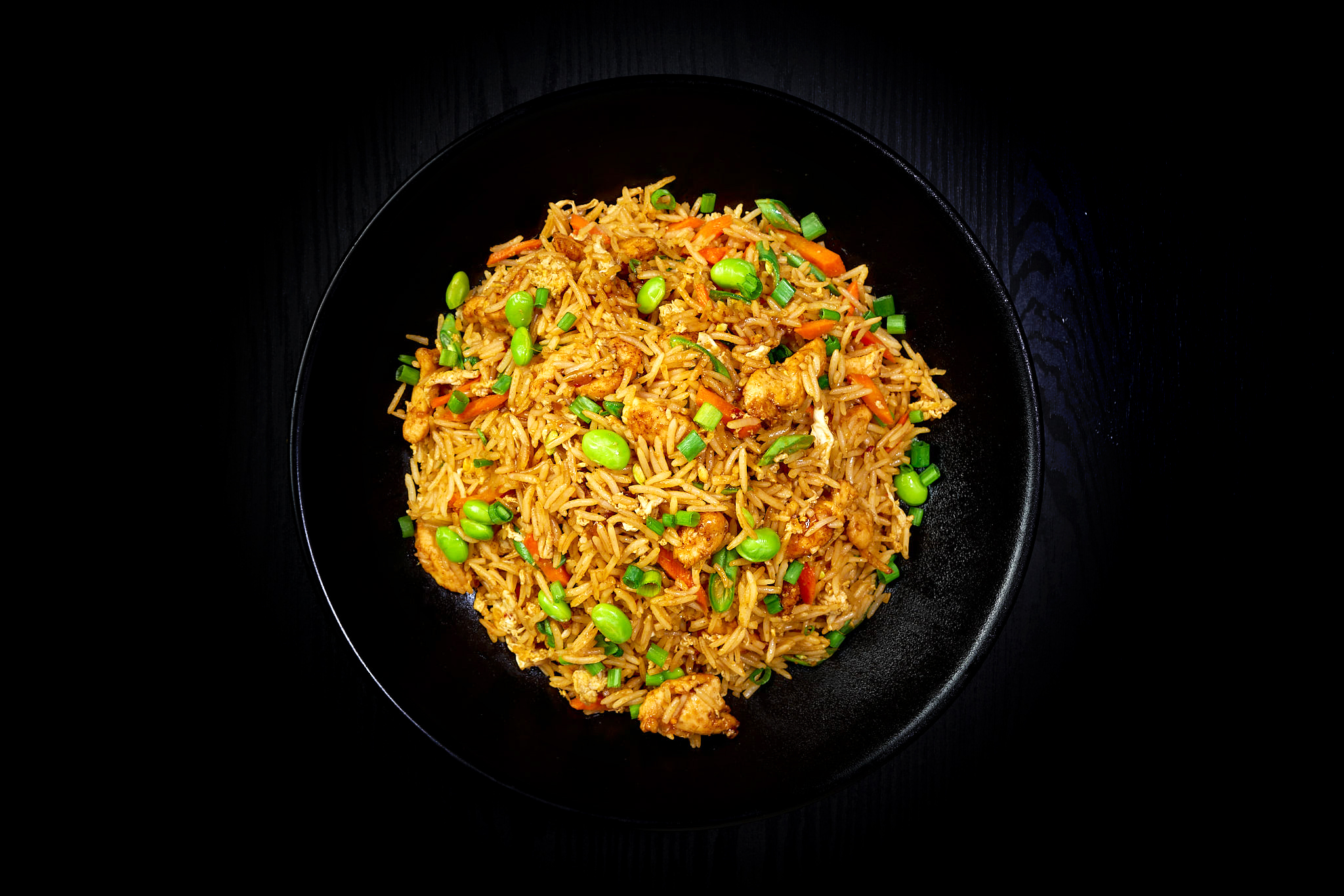 traditional, includes egg and choice of proteins. vegetarian option with no egg.